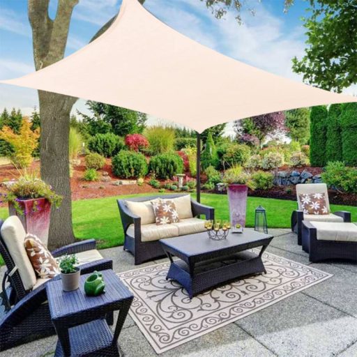 Żagiel przeciwsłoneczny - cień tarasowy, prostokątny 5x5 m W kolorze jasnego beżu - HDPE